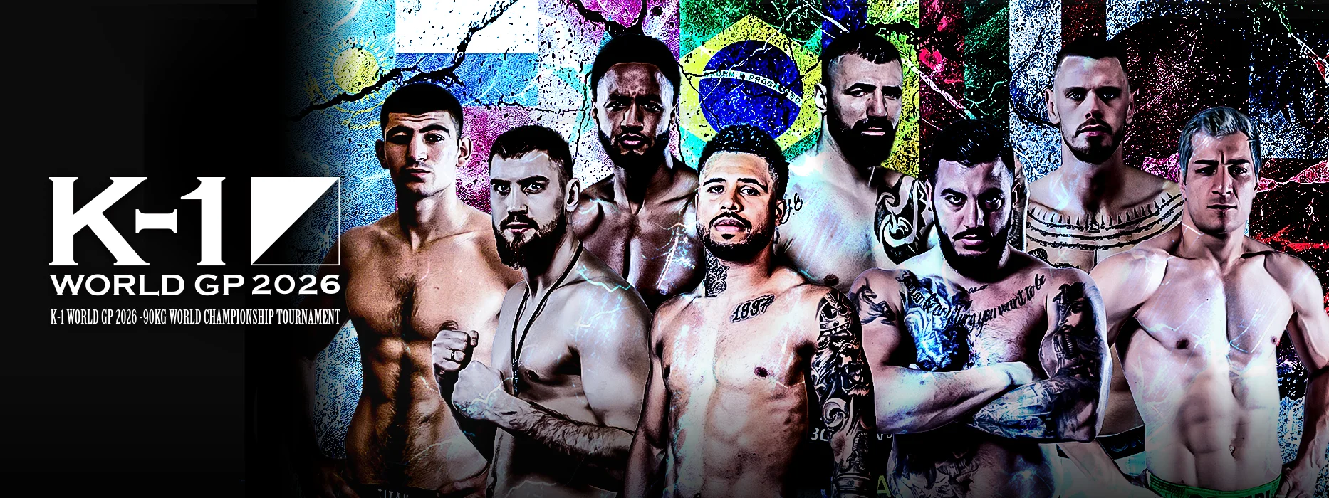 K-1 WORLD GP 2026 - Tournoi du plus fort du monde -90 kg - Combattants participants : Mahmoud Sattari Lukas Achterberg Mattia Faraoni Bogdan Stoica Ibrahim El Bouni Marco Black Diamond Nikita Kozlov Aslan Koshiyev *Combat de réserve : Gunther Kalunda AKIRA Jr.