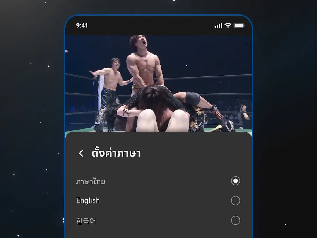 ช่วยเพิ่มประสบการณ์การรับชมของคุณให้ดียิ่งขึ้น ผู้ใช้สามารถเปลี่ยนไปเลือกฟังเสียงบรรยายในภาษาที่ต้องการระหว่างสตรีมได้ ให้คุณได้สัมผัสกับความตื่นเต้นของการต่อสู้อย่างเต็มที่ *เสียงและภาษาที่รองรับอาจแตกต่างไปตามแต่ละอีเวนต์ โปรดตรวจสอบภาษาที่รองรับจากหน้ารายละเอียดอีเวนต์
